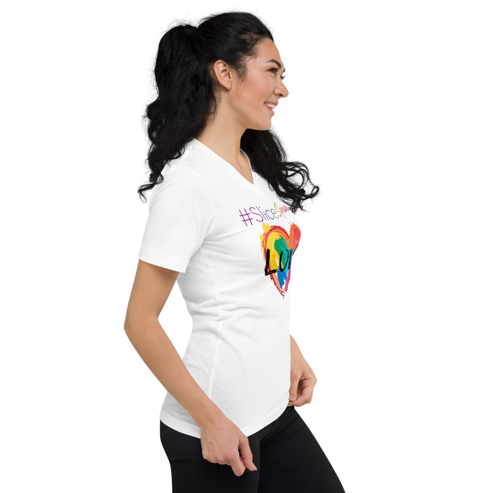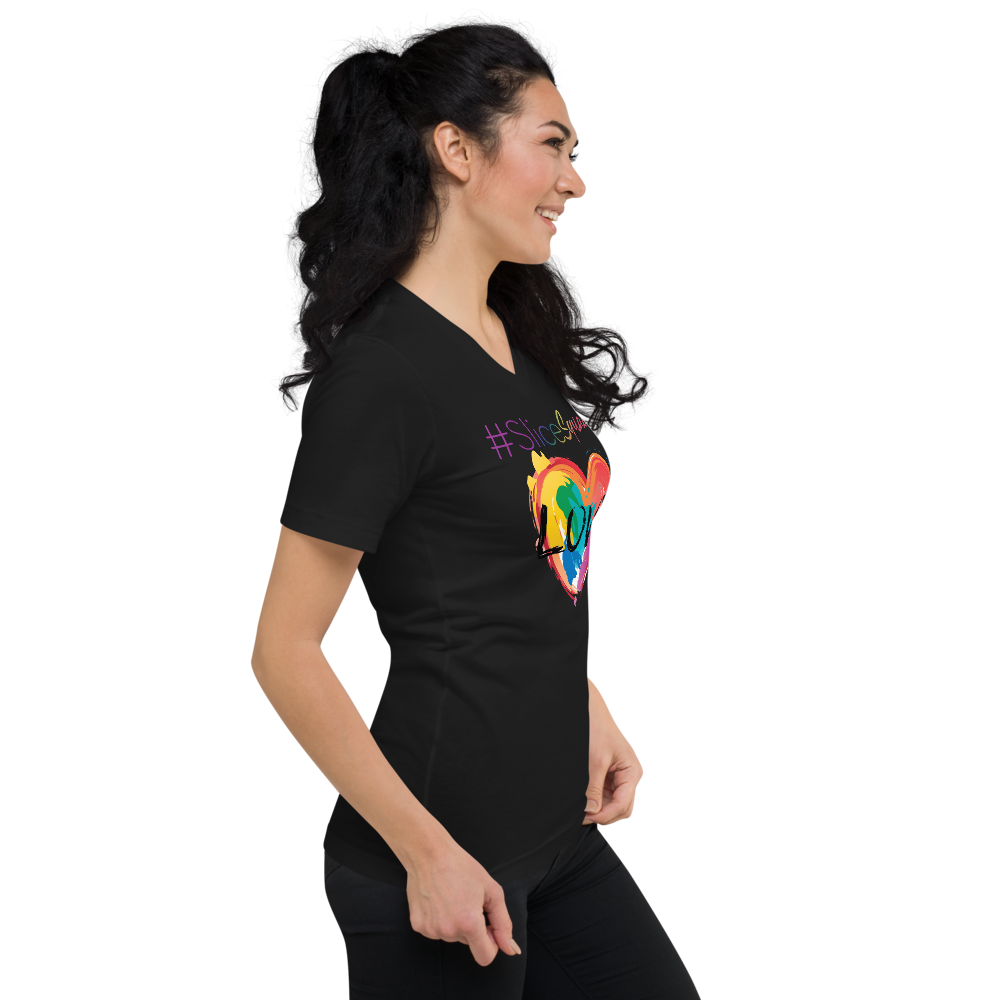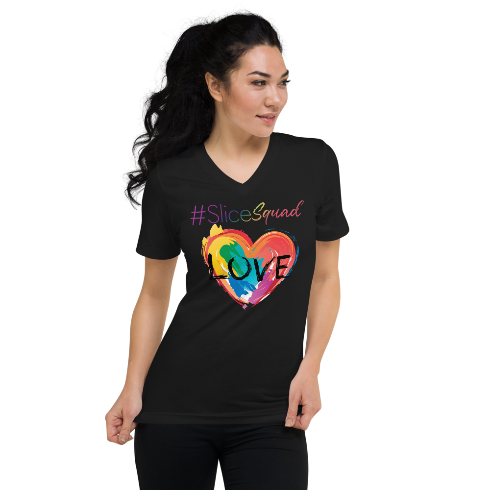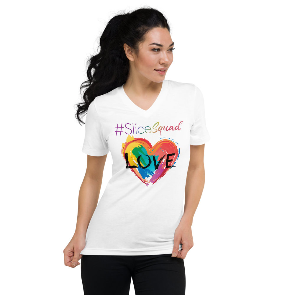 This unisex tee has a classic v-neck cut and fits like a well-loved favorite.